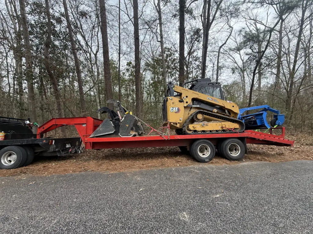 Land clearing is typically the prerequisite — once the property is cleared of trees and brush, the terrain is visible and equipment can move freely. If your land hasn’t been cleared yet, that’s where we start.